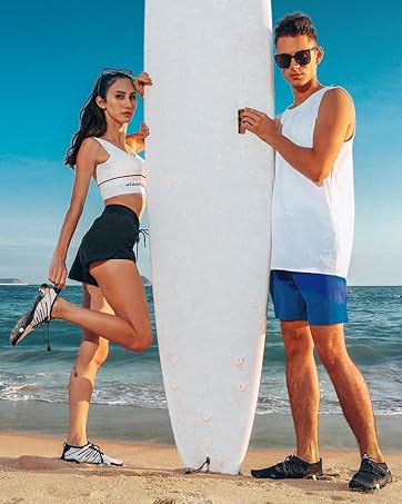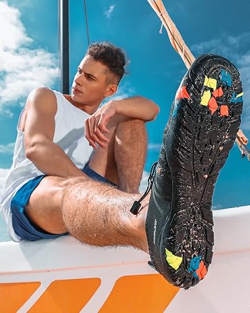 Featuring adjustable elastic lock laces, these shoes offer a custom fit to ensure stability amid strong currents. They are perfect for sailing, windsurfing, kayaking, or parasailing. The easy slip-on design fits men, women, and kids, making them a hassle-free choice for vacations.