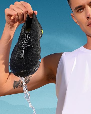 Our innovative 360° drainage system allows water to drain instantly through the soles and insoles. The air-mesh fabric dries much quicker than standard pool shoes, making them ideal for diving, wakeboarding, canyoneering, cruise travel, and water aerobics.